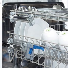 Systema Up&DownEn nuestros lavavajillas se puede de forma facil y comoda regular la altura del cesto superior sin desmontarlo de las guias. La regulacion del cesto superior es muy facil incluso con el cesto cargado de cacharros – es suficiente con levantar ligeramente el cesto, para cambiar su colocacion. |