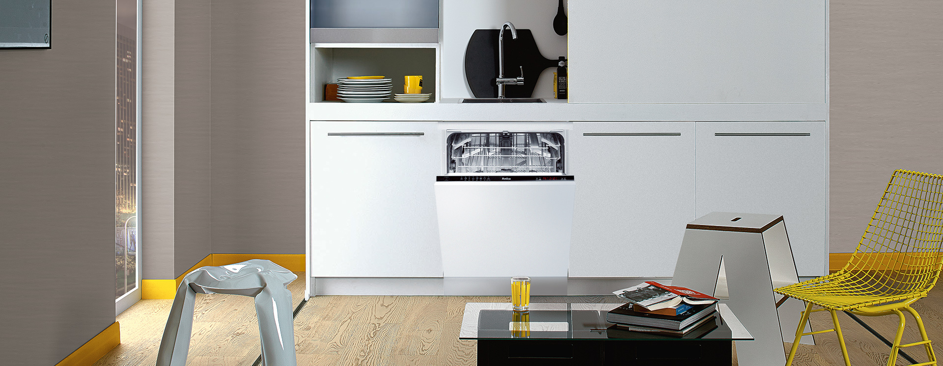 Secado Turbo DryingEn algunos modelos elegidos de lavavajillas Amica ha sido adaptado un ventilador, que de forma activa saca al exterior el vapor de agua. |